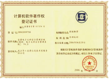 软件名称:安鼎电子文档安全管理系统V4.0 编号:2006SR09708