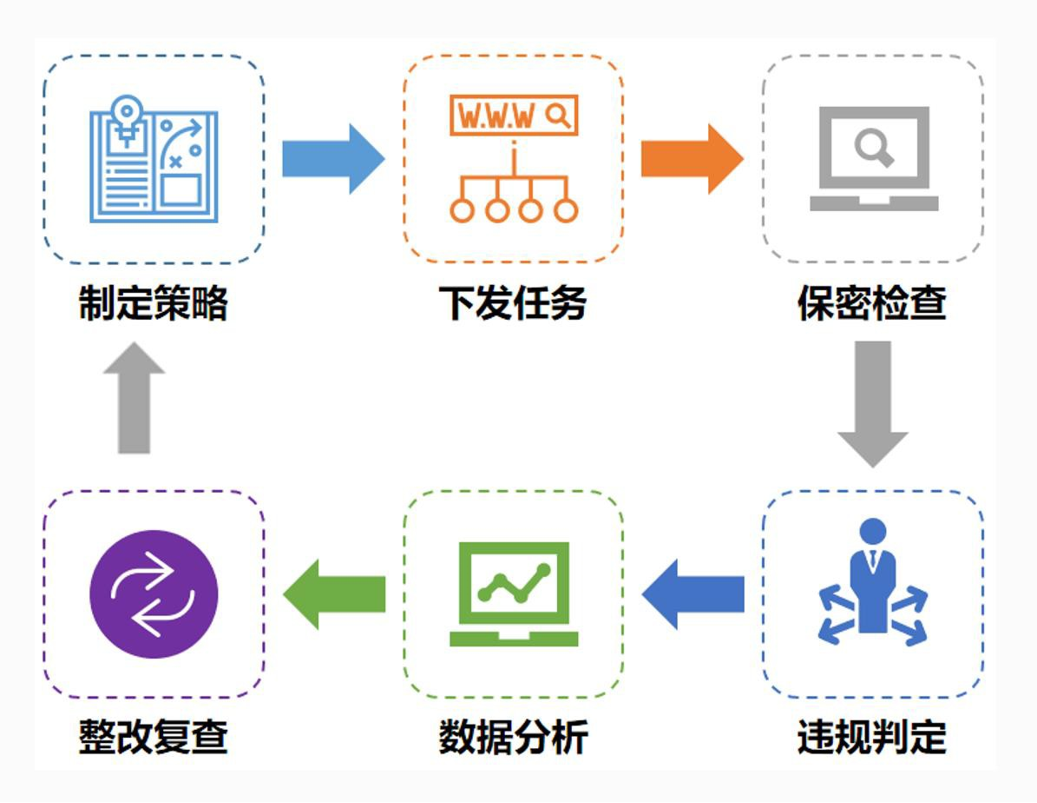 本产品主要针对各级保密局、政府机关、军工单位、科研院所等各类机关企事业单位保密管理工作机构使用。系统实现对管辖网络范围内的所有非涉密计算机终端进行批量化、周期性、常态化的保密检查,重点检查是否违规处理涉密信息,检查结果准确全面。根据用户场景支持临检模式,可在检查完成后自动卸载客户端,不影响终端用户的正常办公。